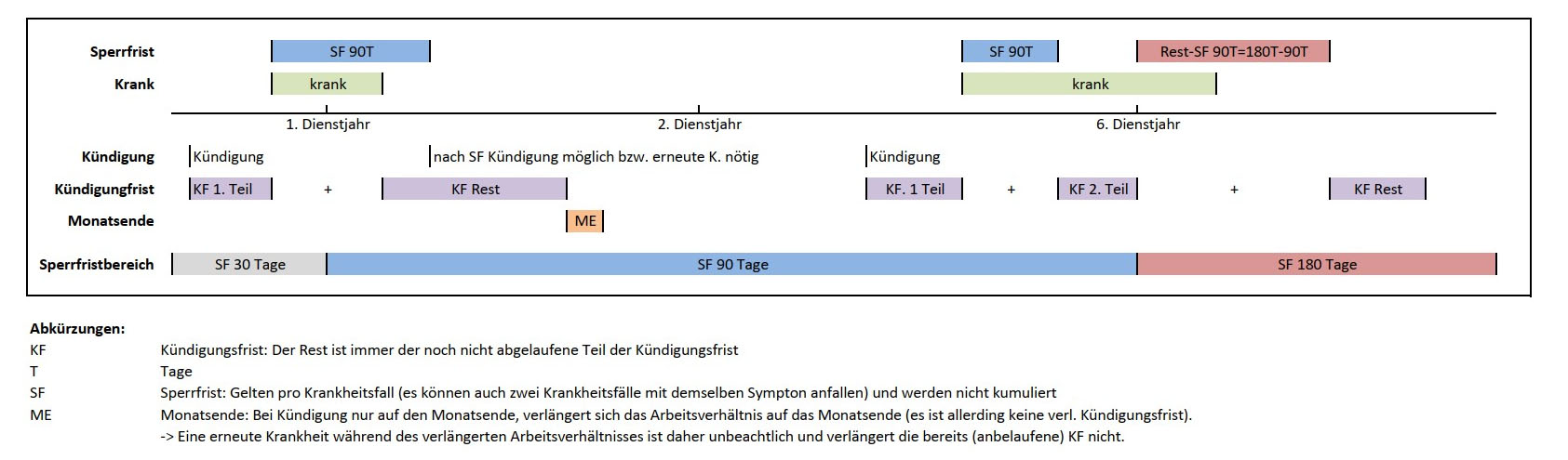 Nun stellt sich die Frage, inwiefern sich der zeitliche Kündigungsschutz auf das jeweilige Arbeitsverhältnis auswirkt. Ist auf Seiten des Arbeitnehmers ein Schutztatbestand vorliegend, sind zwei Konstellationen zu unterscheiden: die Kündigung während der Sperrfrist und die Kündigung vor einer Sperrfrist.